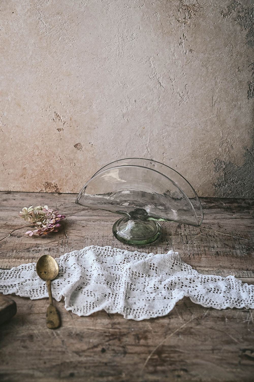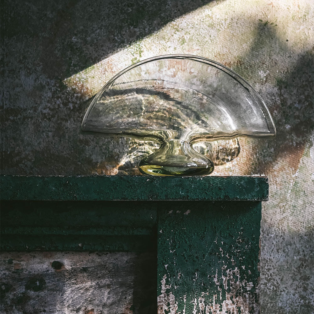 Handblown from recycled glass, this versatile holder is perfect for displaying a stack of napkins, notecards, or mail with simple, understated beauty.