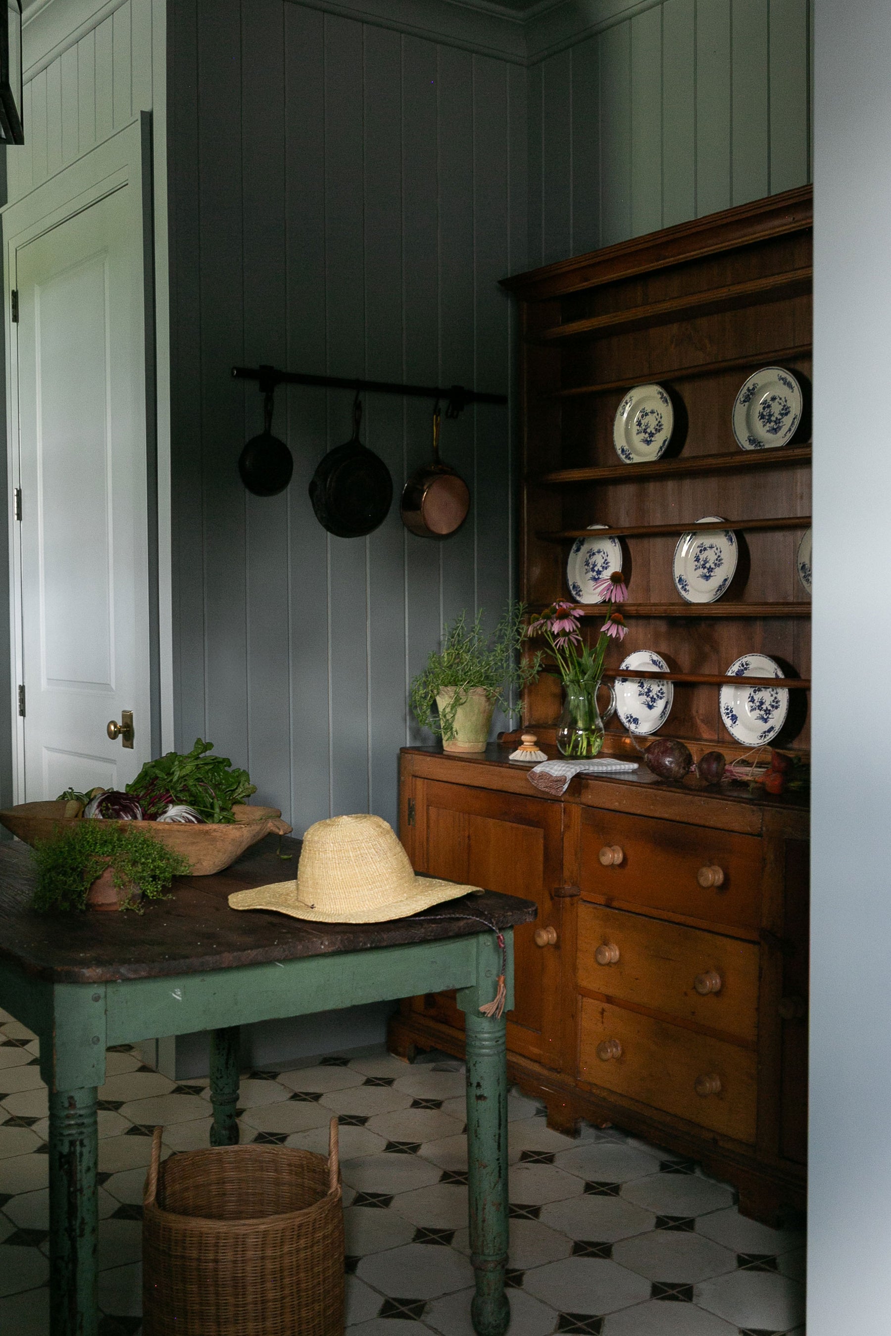 Who says practical can’t be beautiful? This utility room design by Carley Summers combines hardworking essentials with thoughtful details, featuring artisan brushes, well-chosen objects, woven baskets, and vintage furniture that adds soul. It’s a look that proves the most functional corners of the home can be just as beautiful as the rest.